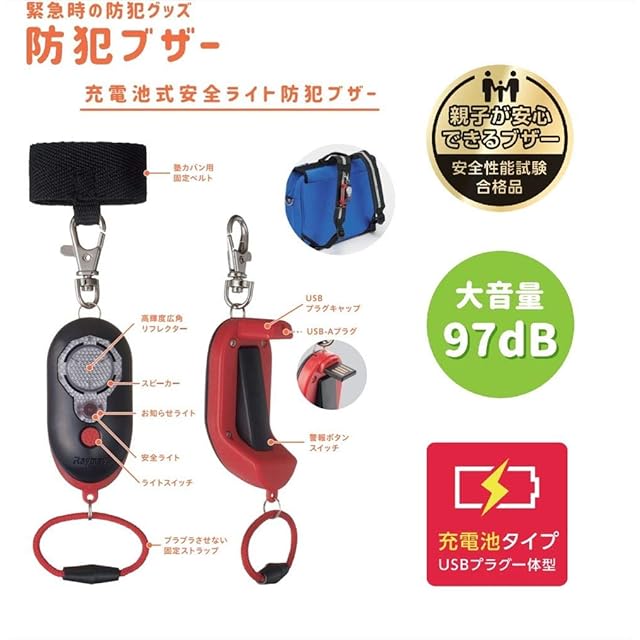 商品名:レイメイ藤井 防犯ブザー 小学生 男の子 充電式 防水 安全ライト付き ピカナル ブラック EBB257B