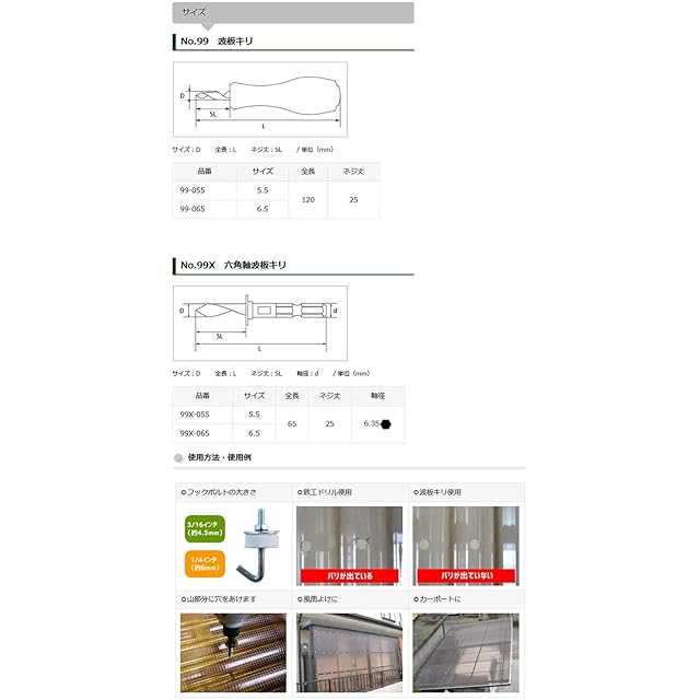 商品名:スターエム 六角軸波板キリ 5.5mm 99X-055