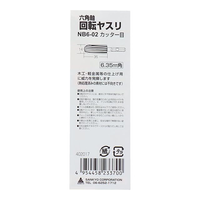 商品名:H&H 六角軸回転ヤスリ カッター目 NB6-02