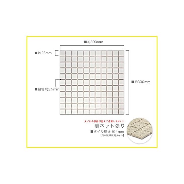 プロ用 25mm角モザイクタイル 11列×11列 NET-25K-01ホワイト