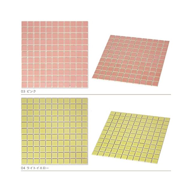 プロ用25mm角モザイクタイル 11列×11列シート張り 300mm×300mm(目地込み) 裏ネット張りと表紙張り 25mm角モザイクタイル 裏ネット張り・表紙張り 300mm×300mmの1シート 裏ネット張りの施工は乾式工法をおすすめします(接着剤施工)。 目地材はモルタルをご使用ください。 25角裏ネット張り(11列×11列) NET-25K-01 NET-25K-02 NET-25K-03 NET-25K-04 NET-25K-05 NET-25K-06 NET-25K-07 NET-25K-08 NET-25K-09 NET-25K-10 NET-25K-51 NET-25K-52 NET-25K-53 NET-25K-54 NET-25K-55