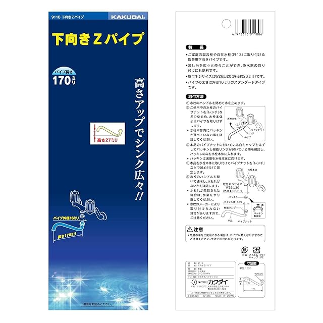 カクダイ 下向きZパイプ 170ミリ 9118