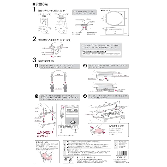 SANEI(サンエイ) 前割便座 ソフト閉止 簡単取付 ワンタッチ着脱 標準・大型兼用 ホワイト PW9022-W
