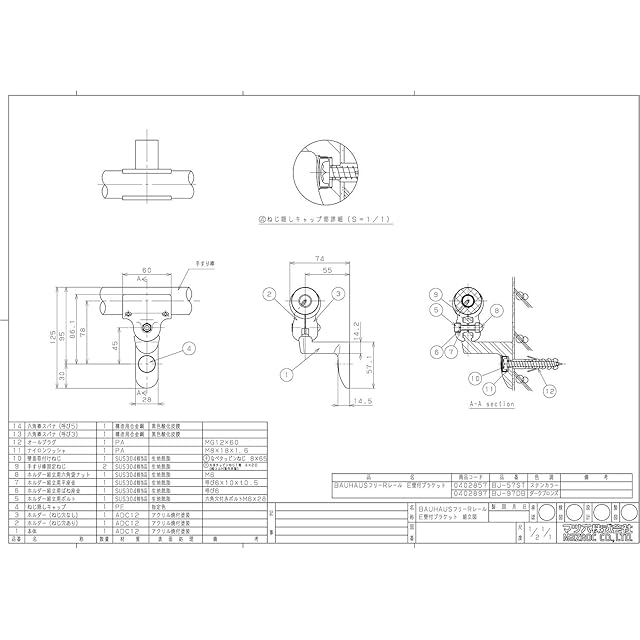マツ六 手すり部材 BAUHAUS フリーRレール E壁付ブラケット BJ-57ST ステンカラー色