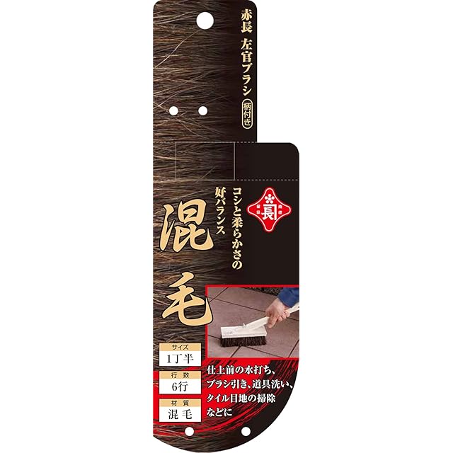 赤長(Akakanechou) 左官ブラシ 赤混毛 サイズ1丁半 6行 柄付