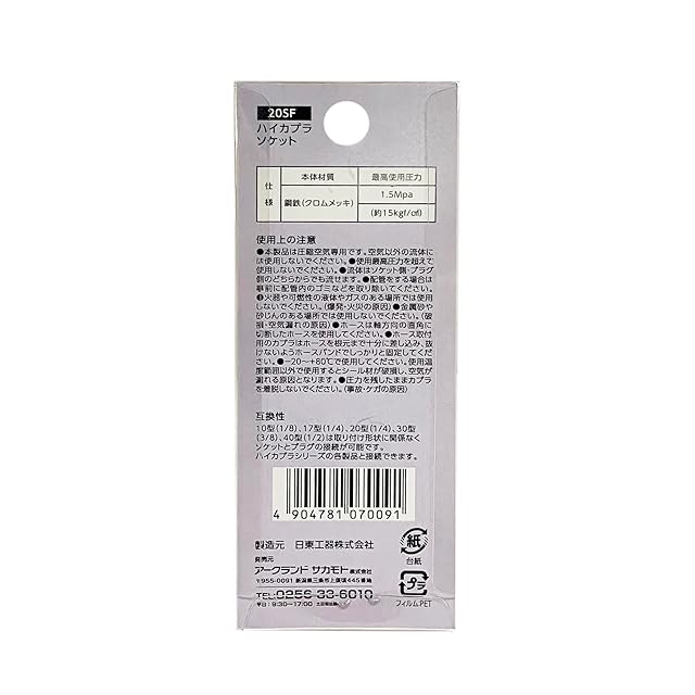 商品名:日東工器 ハイカプラ ソケット 20SF