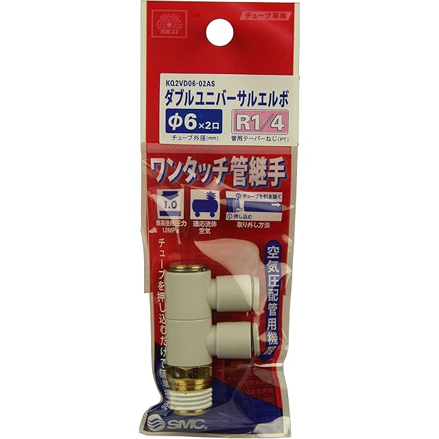 商品名:SK11(エスケー11) ワンタッチ管継手 チューブ用 ダブルユニバーサルエルボ 6mmホース用 R1/4 KQ2VD06-02AS