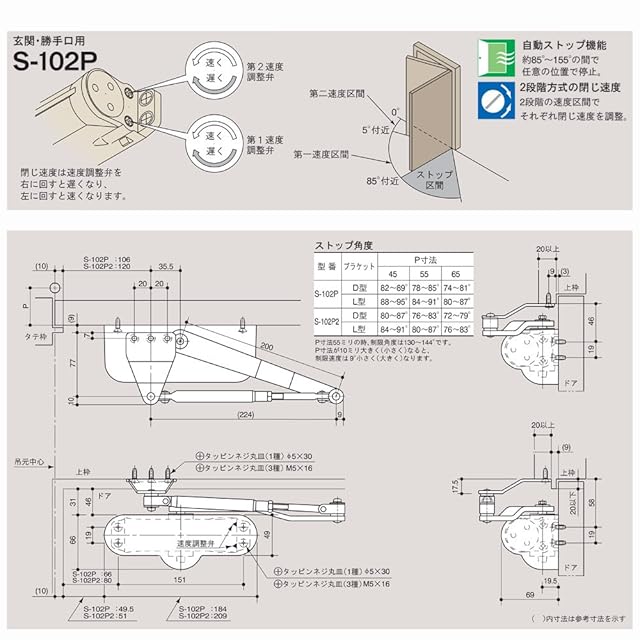 このドアマンは玄関、勝手口用ドアクローザーです。室内にはドアマンS-101Pをご利用ください。