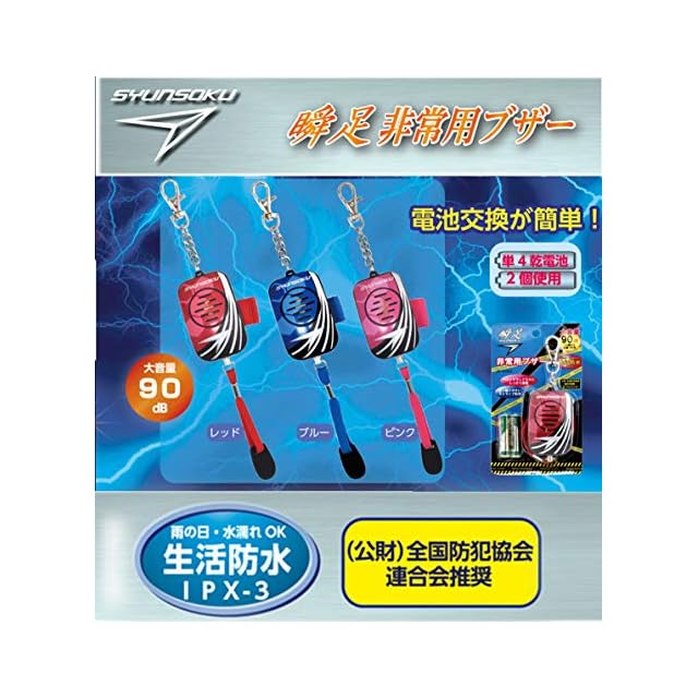 【特長】ベルト付きでランドセルにしっかりとめられる瞬足の防犯ブザー