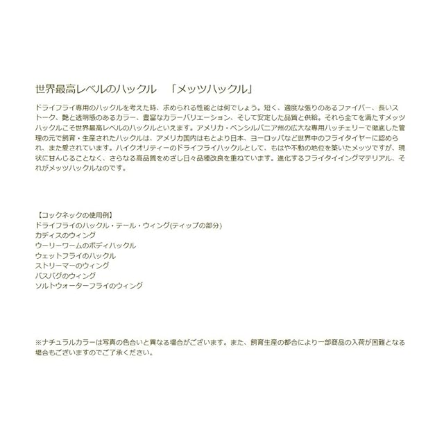 商品名:ティムコ(TIEMCO) タイイングマテリアル メッツ コックネック ハックル 1/2#3 バリアント 91354 161001391354