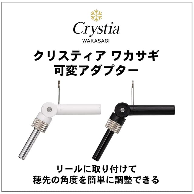 ●「クリスティア」シリーズのリールに取り付けるだけで簡単に穂先の角度を微調整できる便利な可変式アダプター。●穂先を下向きにすることにより、ワカサギの微かなアタリも的確にキャッチ。特に柔らかい穂先には必需品。