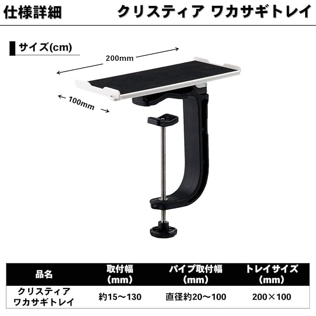 ●取付幅(mm):約15~130●パイプ取付幅(mm):直径約20~100●トレイサイズ(mm):200×100●