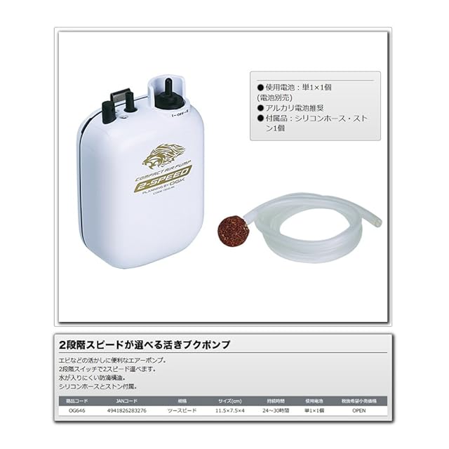 商品名:OGK(オージーケー) コンパクトエアーポンプ OG646 2スピード シリコンホース、ストン付