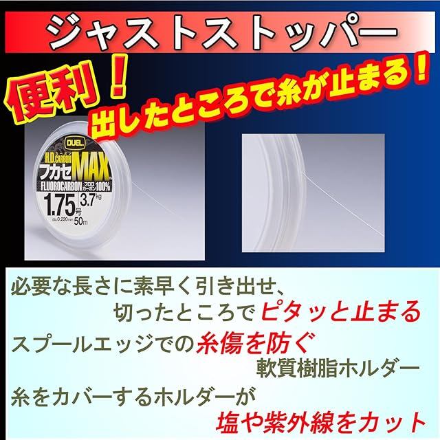 DUEL(デュエル) フロロライン 1.75号 H.D.CARBON フカセ MAX 50m 1.75号 ナチュラルクリアー 磯釣り フカセ H3322 透明
