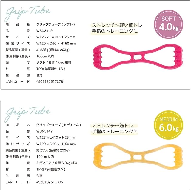 商品名:アルインコ(ALINCO) グリップチューブ (ソフト) ストレッチ 筋トレ 握力 トレーニング ピンク WBN314P