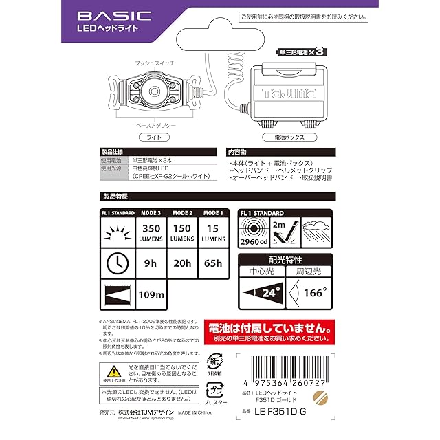 商品名:タジマ(Tajima) LEDヘッドライト ゴールド 明るさ最大350lm LE-F351D-G