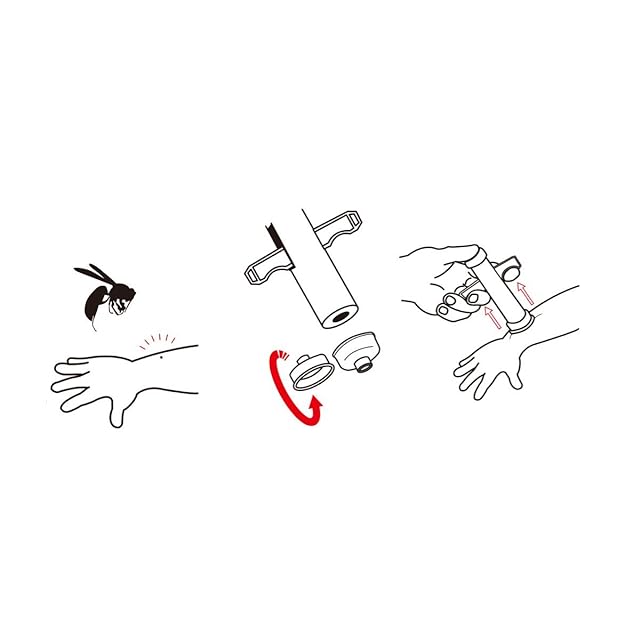 小型で軽く、持ち運びに便利なインセクトポイズンリムーバー。蚊・蜂・毒虫等に刺されたら、マウスピースを傷口にあて、吸引作用で毒液や毒針を抽出できる。傷口に応じてカップ両側のマウスピース面を差し替えて使用可能。