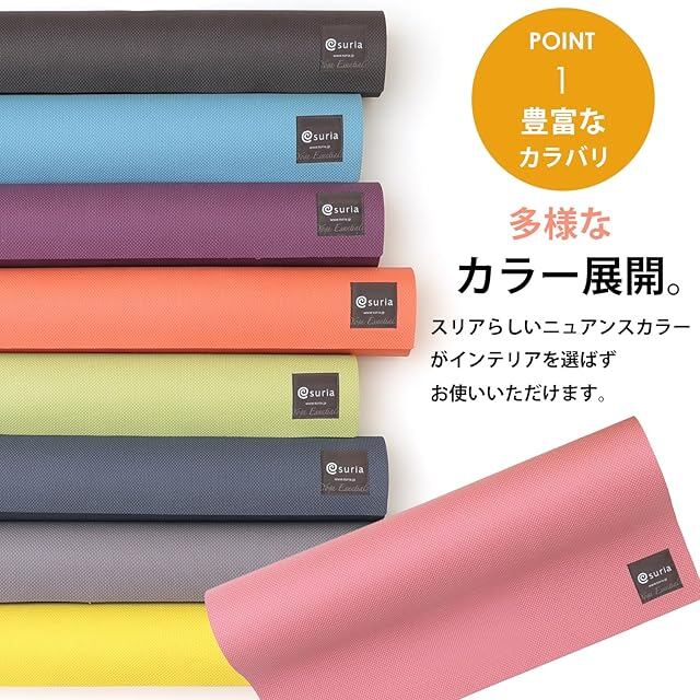 【どんなヨガにもマッチするカラーバリエーション豊富な4mmのヨガマット】コシのあるしっかりとしたクッション性で、リストラティブヨガ、ハタヨガなどのリラックスヨガから、ホットヨガ、アクティブに動くアシュタンガヨガなどにもおすすめです。