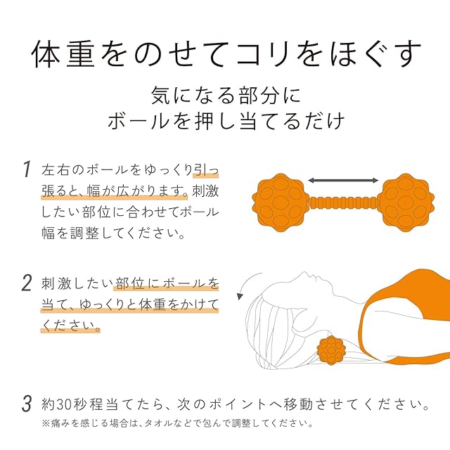 体の部位に合わせてボール幅を最短約125mmから最長約200mm(突起部のぞく)の間で調節可能です。