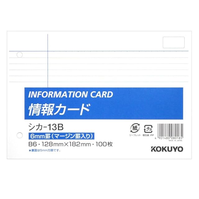 コクヨ メモ帳 情報カード 中横罫 B6横 2穴 100枚 シカ-13B