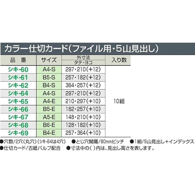 商品名:コクヨ ファイル インデックス 仕切カード A4 5山 2穴 10組 シキ-65