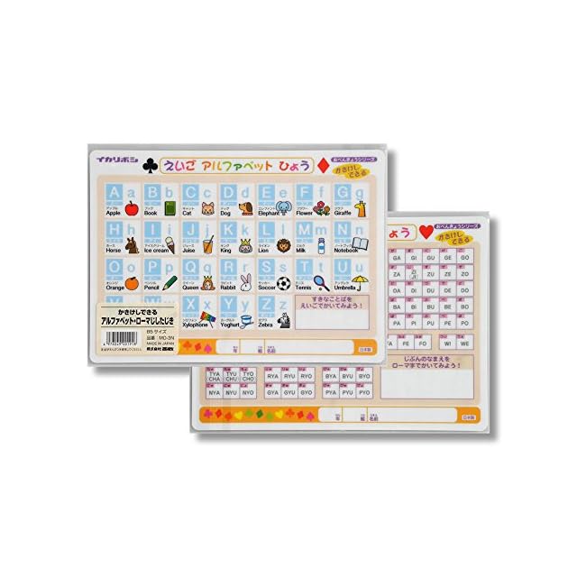 いつも目で見て、楽しんで覚えるための学童用下敷き。 本品は両面とも表面処理により、何度も鉛筆で書いて、消しゴムで消すことができます。 見るだけでなく、書いて覚えることができる学童用の下敷きです。 アルファベット・ローマ字も、日頃から書いて覚えて、身につけます! お名前記入欄付き。