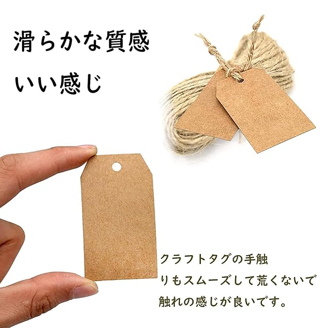 製品の説明<br> <br> 素材:高品質のクラフト紙、環境保護、安全で壊れにくい <br> サイズ:7cmx4cm<br> <br> 含まれるパッケージ:<br> 100タグ+ 30m麻ロープ <br>