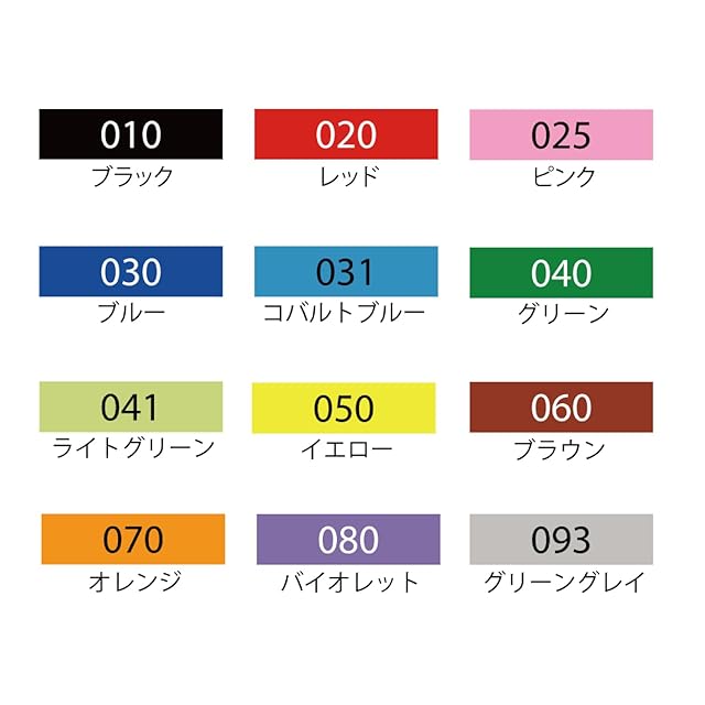 色:12色セット(ブラック、レッド、ピンク、ブルー、コバルトブルー、グリーン、ライトグリーン、イエロー、ブラウン、オレンジ、バイオレット、グリーングレイ)