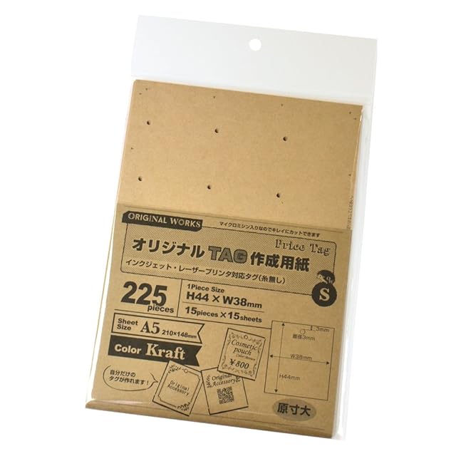 タカ印 タグ 44-7152 オリジナル ワークス プリンタ対応 S 225枚 クラフト
