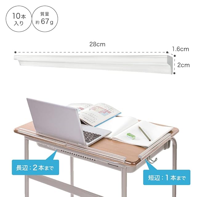 学校机の角Rに対応。新JIS、旧JIS規格の学校机にもご使用頂けます。長辺なら2本まで、短辺なら1本設置可能。ハサミでカットもできます。