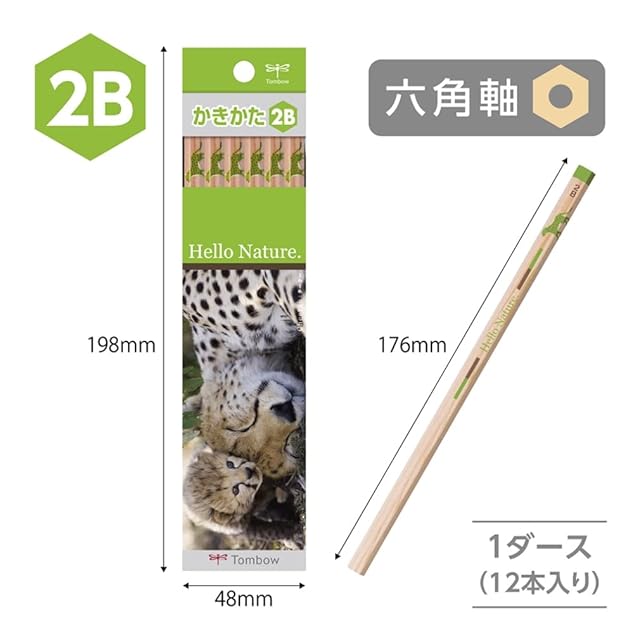 商品名:トンボ(Tombow) 鉛筆 ハローネイチャー かきかた 2B チーター 1ダース KB-KHNCH2B