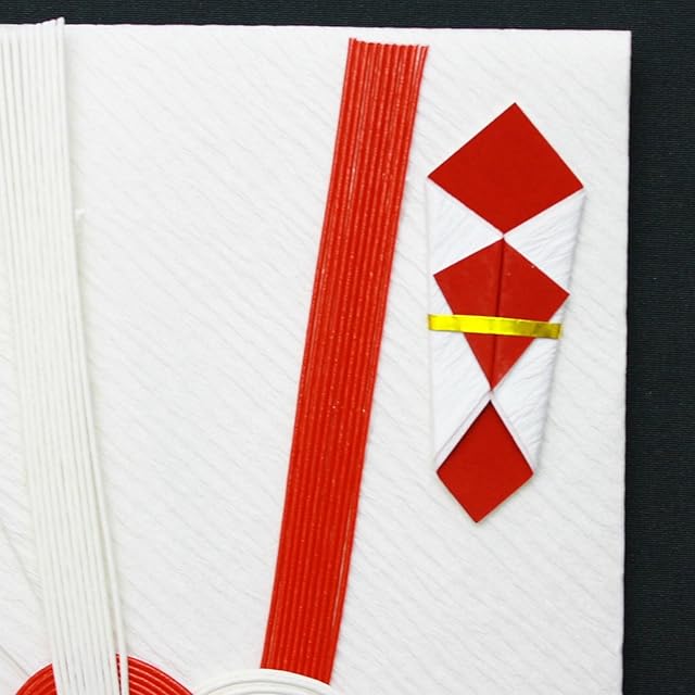本体原紙に檀紙を使用した大判タイプの御祝用金封です。赤白10本あわじ結びの水引飾りを使用しています。