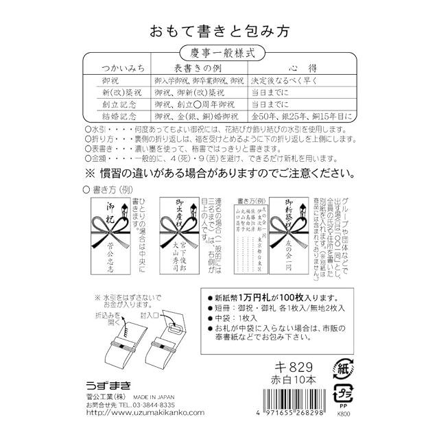 菅公工業 祝儀袋 金封 百万円が入る祝金封 赤白花結び キ829