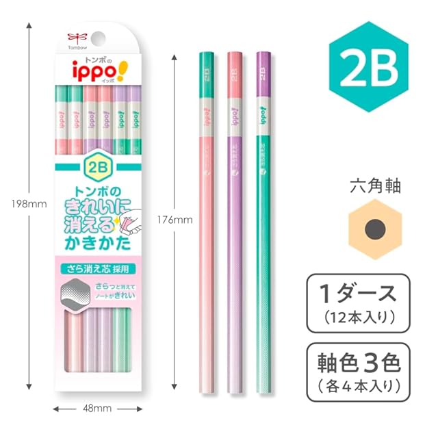 商品名:トンボ鉛筆 2B きれいに消える かきかた鉛筆 (さら消え芯) 1ダース ピンク KB-KSKW01-2B