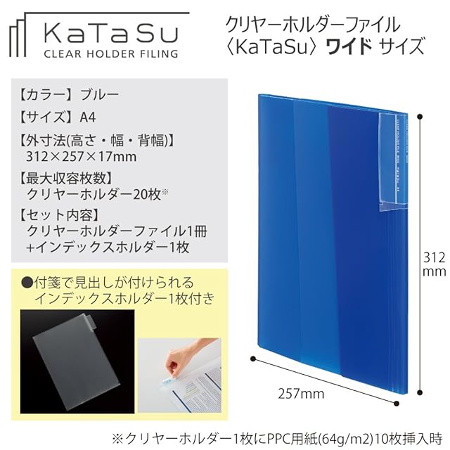 コクヨ ファイル クリヤーホルダーファイル KaTaSu A4 ワイド ブルー フ-KCW5720B