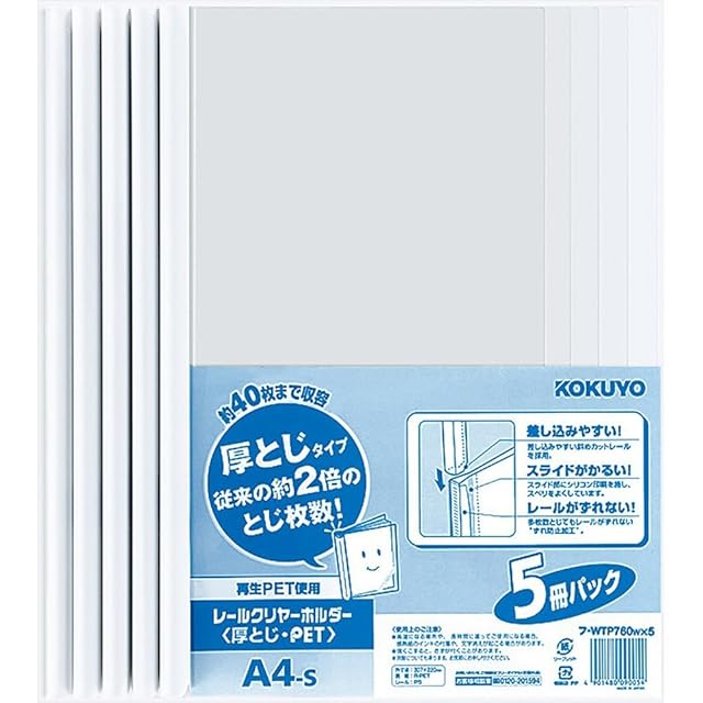 コクヨ ファイル レールクリヤーホルダー A4 5冊 フ-WTP760WX5