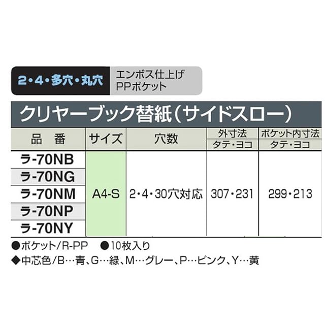 商品名:コクヨ ファイル クリアファイル替紙 サイドスロー ラ-70NM