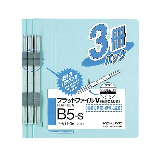 コクヨ ファイル フラットファイル 紙表紙 樹脂製とじ具 2穴 B5 150枚収容 青 フ-V11-3B