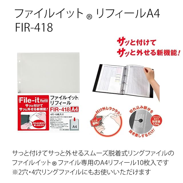 商品名:テージー ファイルイットリフィール FIR-418 A4 4穴 10P