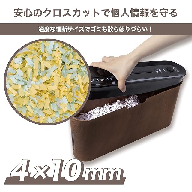 商品名:アスカ シュレッダー クロスカット B06WD 木目 連続10分 最大3枚 コンパクト 卓上 A4