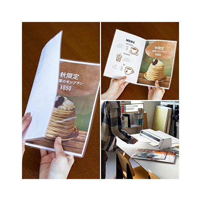 メニュー表など、2つ折り加工に最適。あらかじめ折り目が入っているのでキレイに仕上がります。