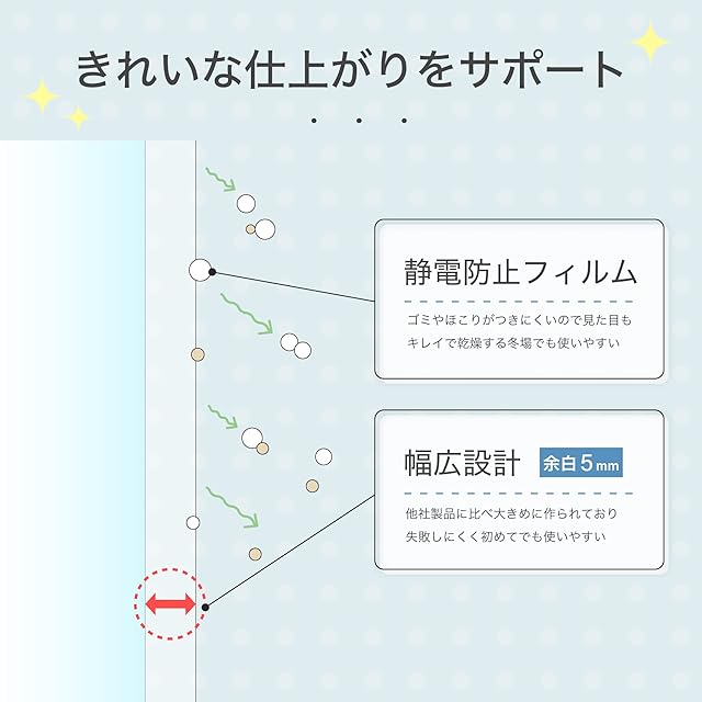 75μmのラミネートフィルム。通常品の100μに比べてプラスチック樹脂量を25%削減。用紙が入れやすい幅広サイズ