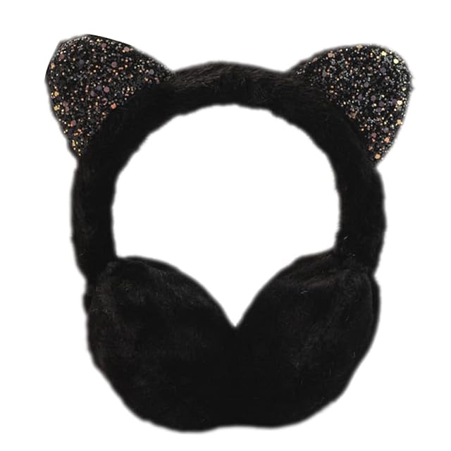 [YUEGUANG] キッズ 耳あて イヤーマフ 防寒 保温 子供用 女の子 猫の耳 可愛い ふわふわ アウトドア 携帯便利 通学 通園 ファッション (ブラック)