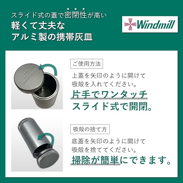 商品名:ウインドミル(Windmill) 携帯灰皿 スライド式 フィールドマックス FMR-5000 アルミ製 ガンメタル 582-1003
